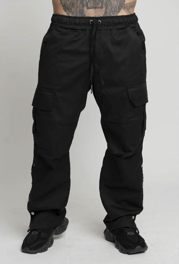 Pantalón de Cargo corte recto, detalles de botón de metal, cintura ajustable con jareta